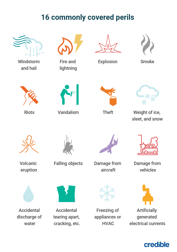 Most homeowners insurance policies cover 16 common perils: