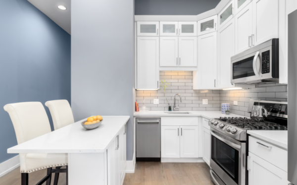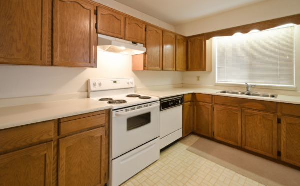 If your kitchen is looking dated, you can replace the cabinets — if you want to spend a small fortune. For a more budget-friendly option, consider replacing the countertops instead.