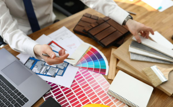 Paint, window coverings, and flooring are usually easy to get samples of. Upholstered and fabric items, like couches and curtains, may not have samples available unless you’re ordering higher-end or custom items.