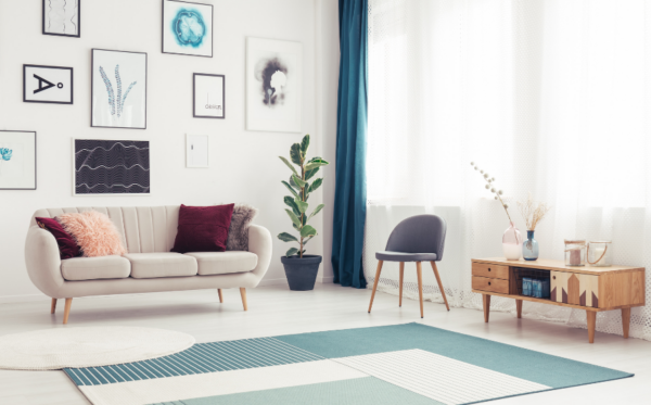 Rugs, throw pillows, curtains, shelves, and art will help pull your space together and make it feel like home. These items are also the perfect way to incorporate the accent colors from your color palette.