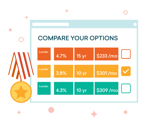 Credible makes it easy to compare great refinance rates. In as little as three minutes, you can see prequalified rates from all of our partner lenders. Checking rates is free — and it won’t affect your credit score.