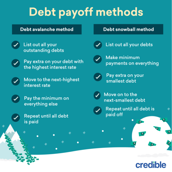 With the debt avalanche method, you’ll focus on paying off your loan with the highest interest rate first while continuing to make the minimum payments on your other loans.