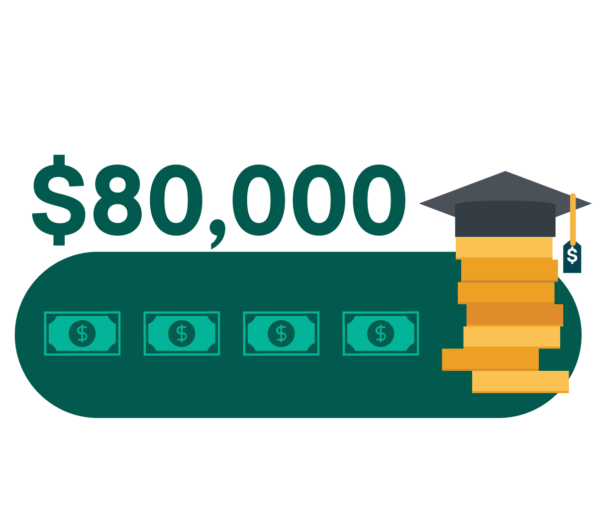 Paying for college can be expensive. While the average student loan debt for college students is $39,351, it isn’t uncommon for students to leave school with $80,000 or more in education debt.