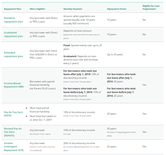 Here’s how the four main IDR plans compare to a few other federal repayment plan options: